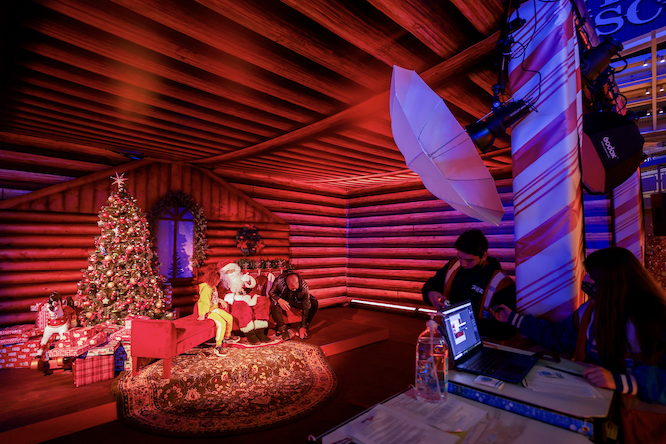 – Take pictures for this year’s family holiday card by choosing from a multitude of backdrops, including giant wrapped presents, snowmen, Santa’s sleigh, and a 40-foot Christmas tree.